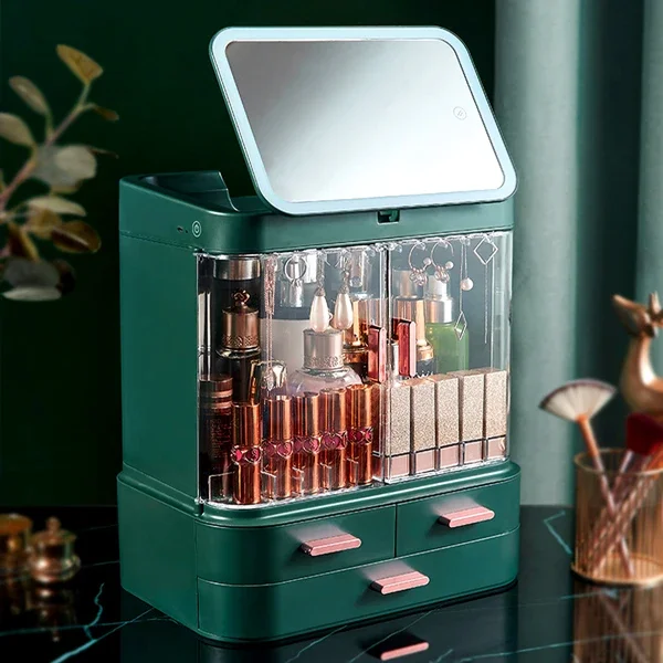 Cosmetic Storage Box Desktop Accessories Skin Care Products Waterproof Storage Rack Dustproof LED Makeup Mirror Bathroom Storage