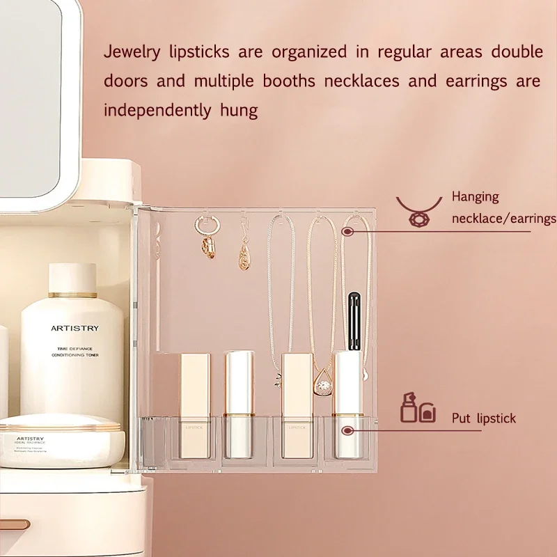 Double doors, magnet adsorption, regular jewelry department, organized storage, independent hanging of necklaces and earrings